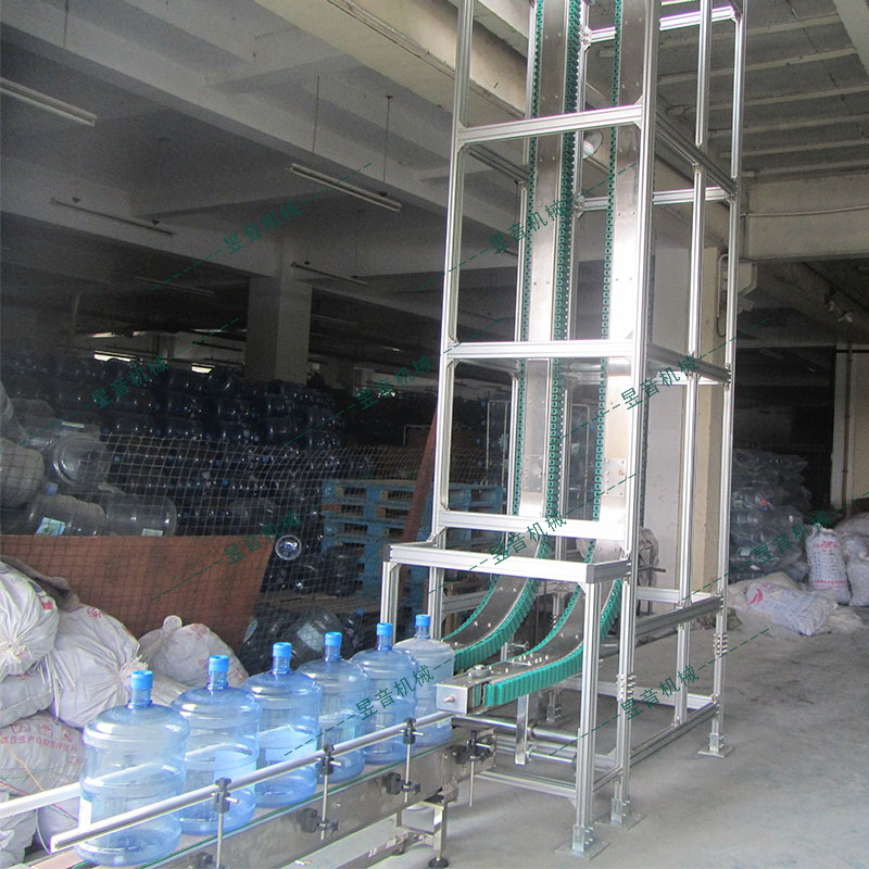 夾瓶輸送機(jī)將產(chǎn)品在樓層間進(jìn)行提升或下降,可直接將提升機(jī)的進(jìn)出口與上下樓層內(nèi)的生產(chǎn)設(shè)備的出入口連接起來,以達(dá)到一個(gè)連續(xù)生產(chǎn)工藝狀態(tài),彌補(bǔ)了使用普通電梯所造成的間歇性工作方式的缺