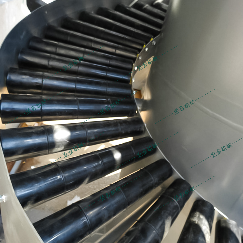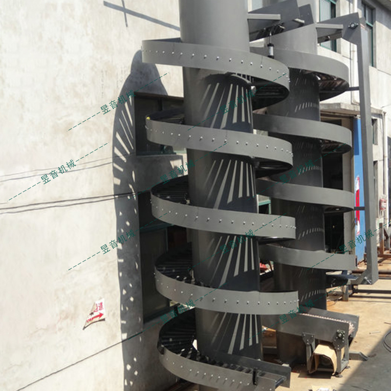 2.占地小,結(jié)構(gòu)緊湊,貨物按照螺旋輸送升降,避免角度過大,造成貨品傾斜和破損;