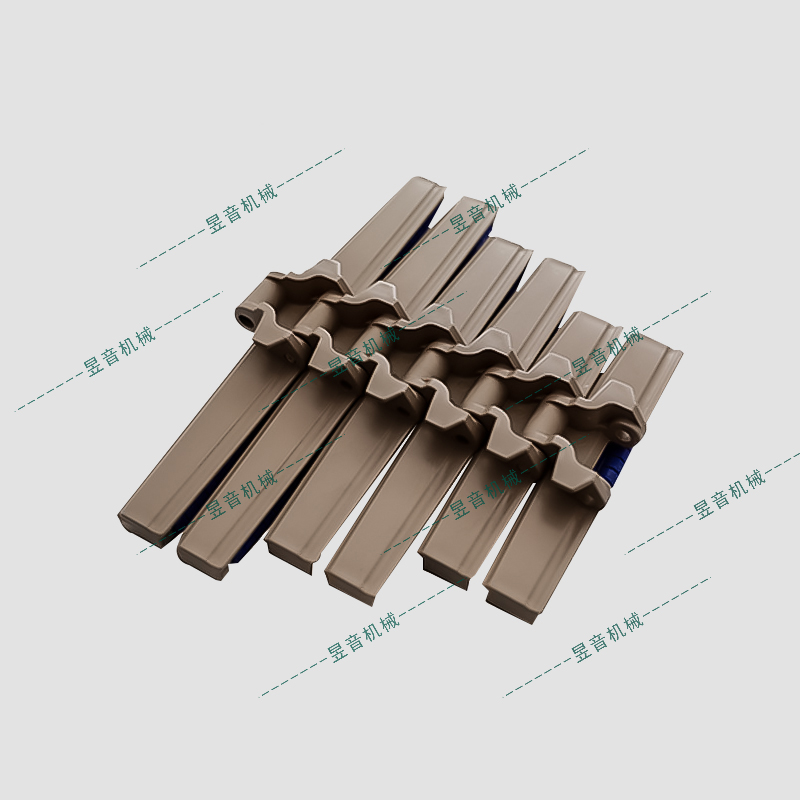 821PRR滾珠鏈板材質(zhì):卡板為POM,顏色為咖啡色;滾珠為POM,顏色為藍(lán)色; 銷軸為不銹鋼。