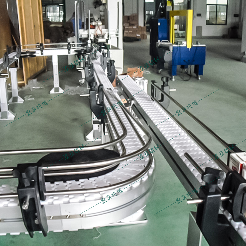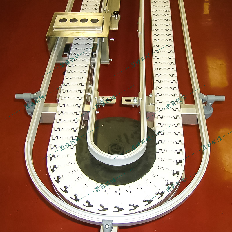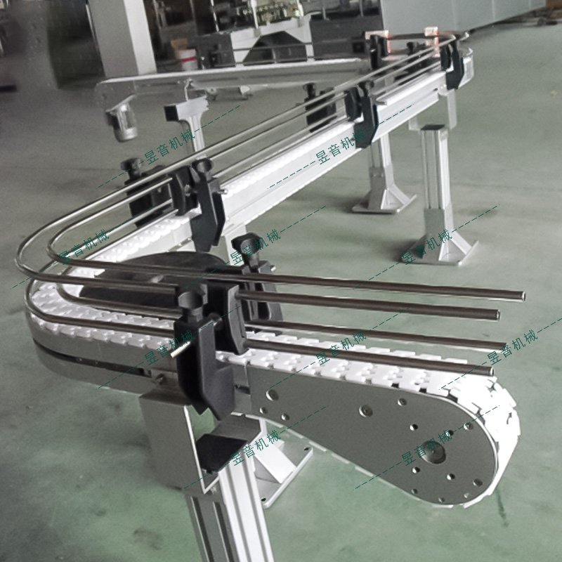 1.輸送鏈轉(zhuǎn)彎半徑小,可爬坡,可螺旋;