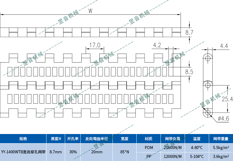 聚甲醛網(wǎng)帶(POM塑料網(wǎng)帶)承受溫度:4~80℃