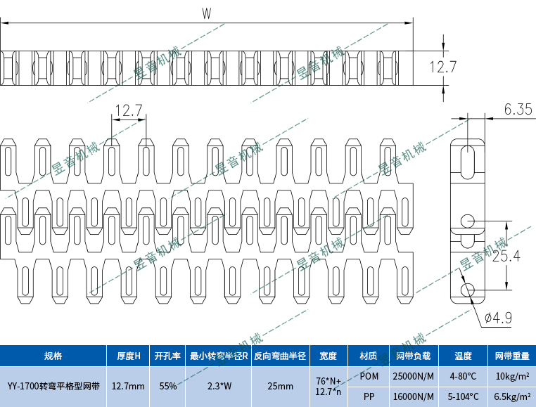 1700A轉(zhuǎn)彎平格型網(wǎng)帶